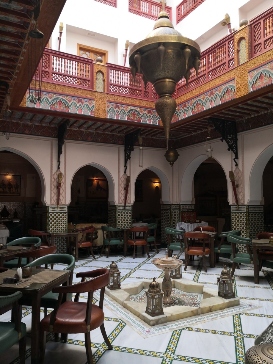 Situado en el antiguo palacio de Moulay Hafid, para llegar a él tuvimos que salir de la medina y caminar ya con noche cerrada unos 20 minutos por sus animadas calles, sin ninguna sensación de inseguridad.