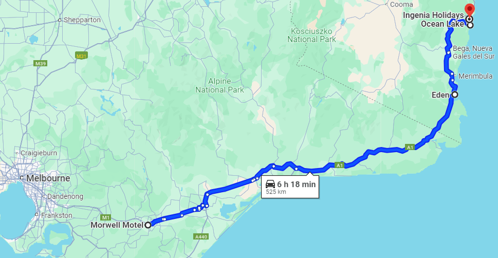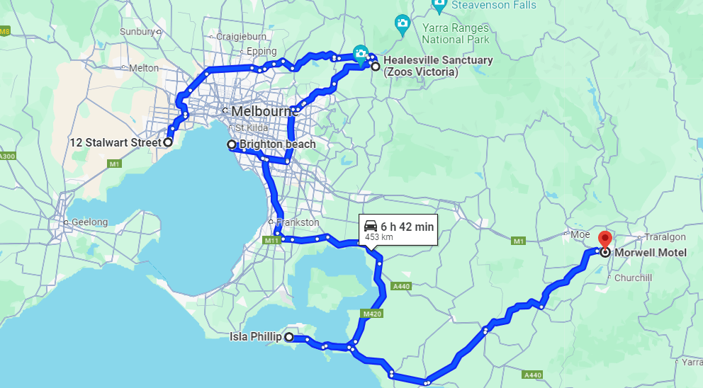Esta es el camino que habíamos seguido esa mañana antes de tomar rumbo rápido hacia la capital del estado de Victoria.