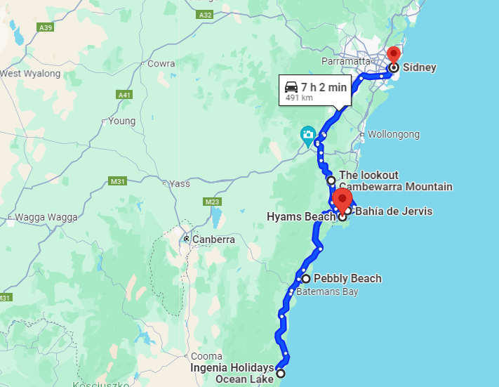 Esta es la ruta completa resumida que hicimos en el país aussi.