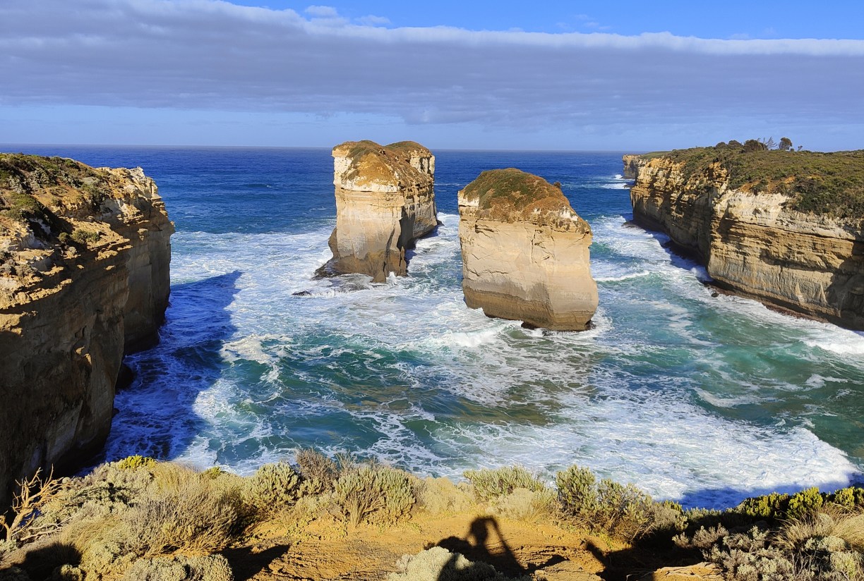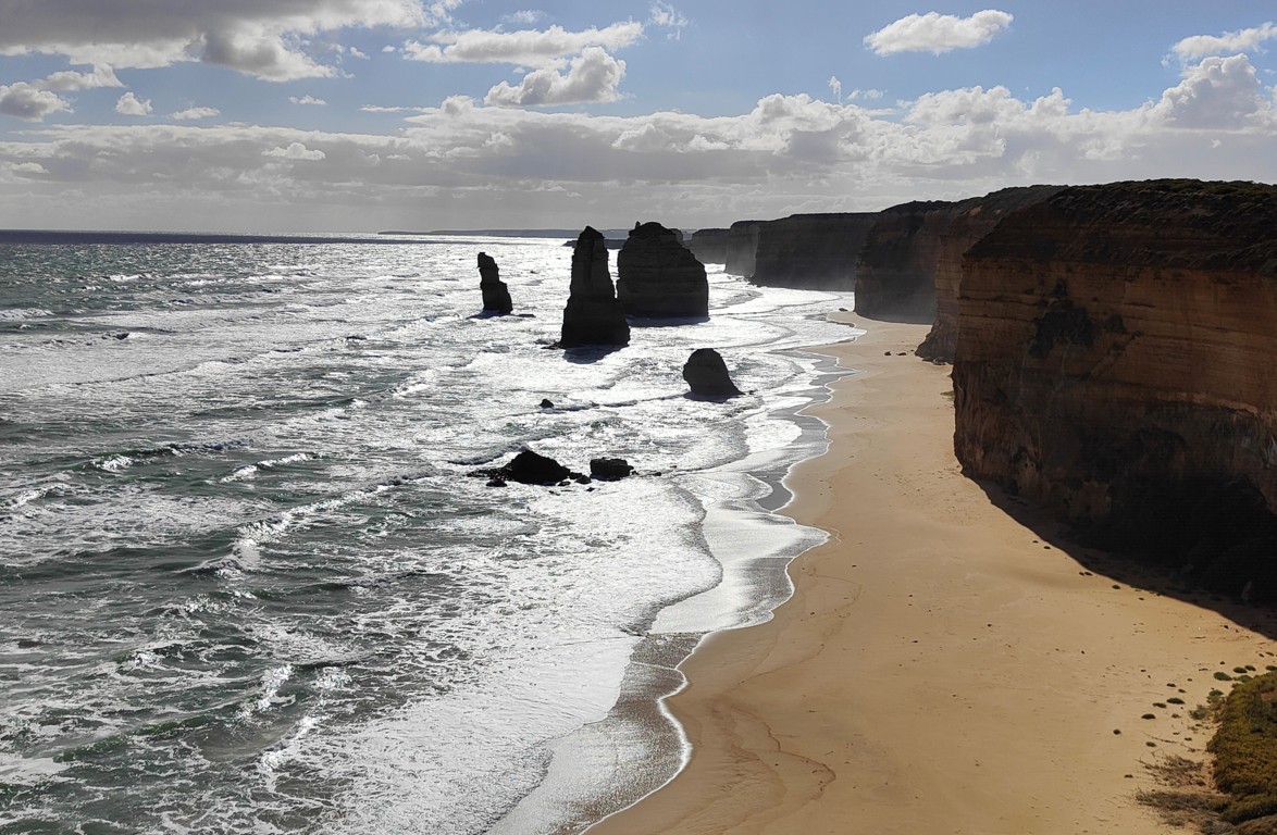 Nuestra intención de ese primer día era recoger el coche de alquiler que había gestionado desde España y comenzar nuestro camino hacia el oeste. Ese día que empezaba tan temprano teníamos planificado recorrer de este a oeste la famosa Great Ocean Road, una ruta que además de bonita, tiene una interesante historia detrás. Resulta que tras la Primera Guerra Mundial, muchos de los soldados que regresaron a casa no tenían trabajo con el que ganarse la vida. Por tanto, y por iniciativa popular, en 1931 se decidió construir la Great Ocean Road, para que por una parte pudiera emplear a todos esos trabajo a miles de soldados y por otra sirviera de homenaje a todos aquellos que fallecieron en combate. Con sus más de 240 kilómetros, es considerada el monumento de guerra más grande del mundo.