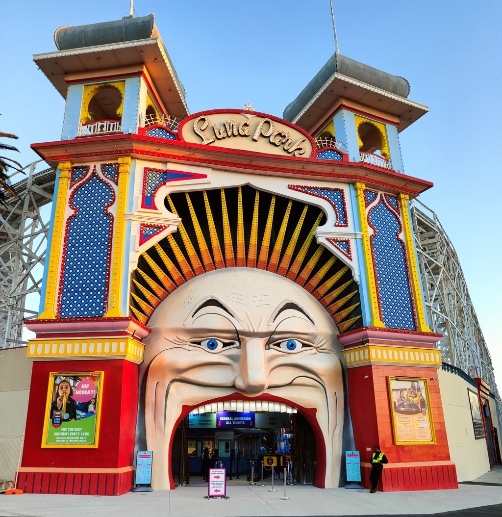 La calle con más movimiento de esta zona es Acland Street, donde restaurantes, bares y tiendas se mezclan con antiguas casas de finales del siglo XIX, algunas de las cuales han sido reconvertidas en apartamentos. Dimos un paseo por la zona y de vuelta al coche vimos el famoso mini parque de atracciones Luna Park con su célebre boca de Mr Moon engullendo a los visitantes. Abierto en 1912 nada menos, alberga la montaña rusa de madera que ha funcionado durante más tiempo de todo el mundo.