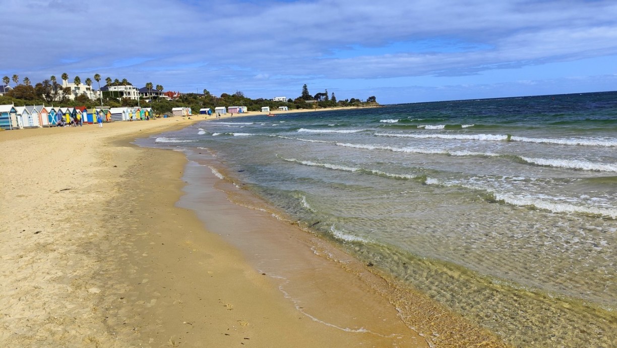 Tras unas tres horas de visita volvimos al coche y condujimos durante una hora y cuarto aproximadamente para llegar a nuestro siguiente destino, la famosa playa de Brighton Beach. Realmente comprende varios kilómetros de playa divididos en zonas con distintos nombres: Brighton, Middle Beach y Dendy Street Bech (en esta última están las casillas de colores). Dejamos el coche en un parking donde tuvimos que pagar por el tiempo que estimábamos nos llevaría la visita y tras prepararnos unos bocadillos nos acercamos a comernóslos junto al mar.