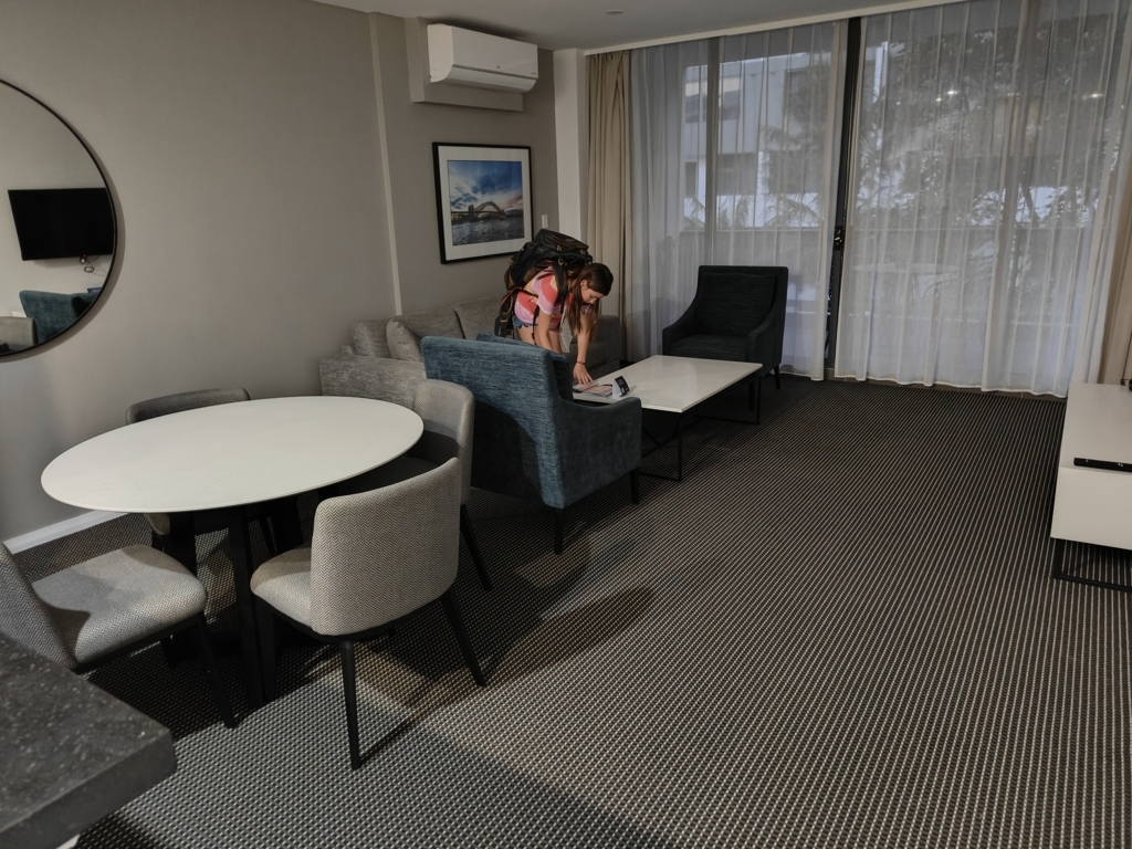 Llegamos al hotel, donde pudimos lavar la mayoría de la ropa sucia y es que para tema de maleta, ya aprendí hace tiempo que llevar un equipaje grande a un viaje largo es ridículo (según mi humilde opinión), y más si es un país donde o bien puedes lavar ropa sin gastarte mucho, por ejemplo, la mayoría de los países asiáticos, o bien tienes la opción como aquí en Australia de hacerlo en los propios apartamentos. Sin tanto equipaje os podréis de manera más cómoda y además se evitan pérdidas de maletas y esperas al llegar a los aeropuertos. Hacerme caso, que yo era reacio al principio 😜