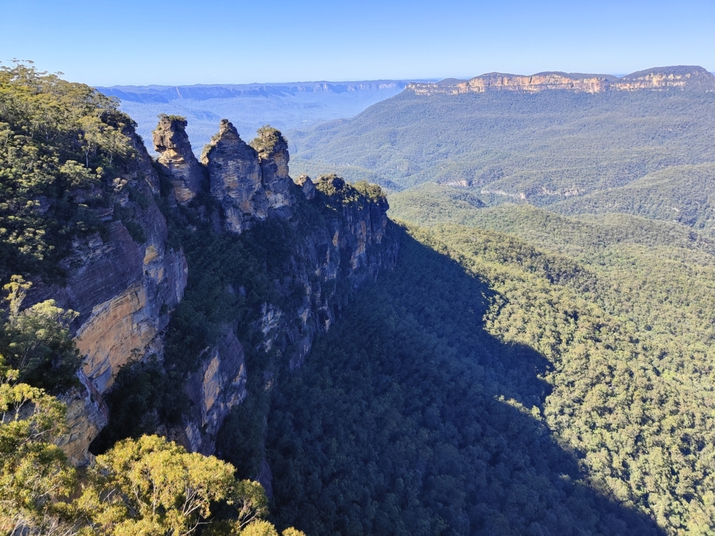 A unos 13 kms llegamos a un mirador que había leído que era uno de los más impresionantes, el Govetts Leap Lookout. No se equivocaban, para mí fue el mejor de todos. Las vistas son mucho más amplias que los otros y no te pierdas a la derecha el hilito de agua que cae al vacio, la Bridal Veil Falls. Me quedé un buen rato alucinando con las vistas.