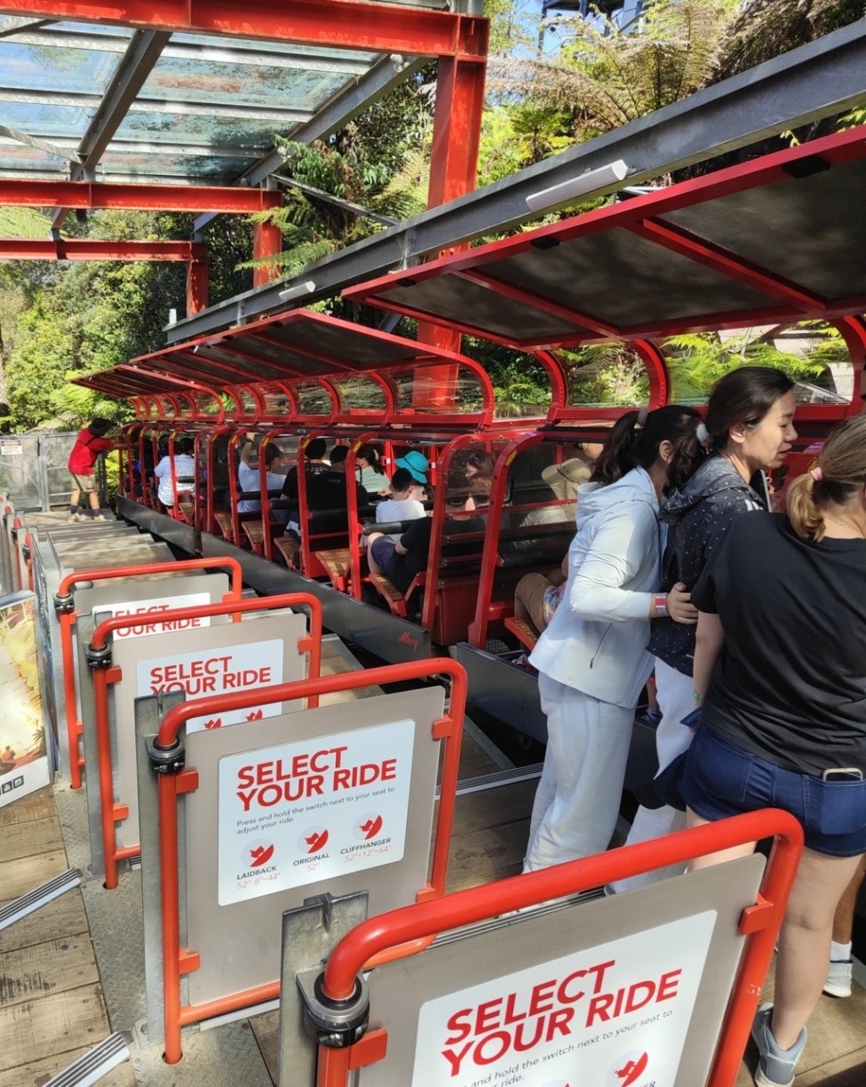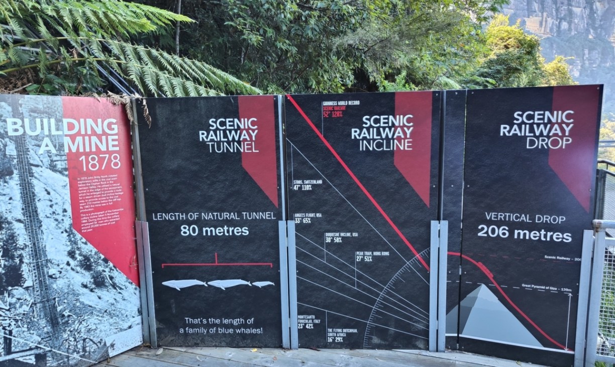 Por fin llegó la hora de montar en la atracción seguro más excitante de este Scenic World y que más nos apetecía montar, sobre todo a Liria, el Scenic Railway. Se trata del tren de pasajeros con más inclinación del mundo que recorre una ruta de 206 metros a través de un túnel antes de emerger al suelo del valle de Jamison. La pendiente es de nada menos que 52°. El ferrocarril original se construyó a finales del siglo XIX para dar servicio a la mina de carbón de Katoomba.