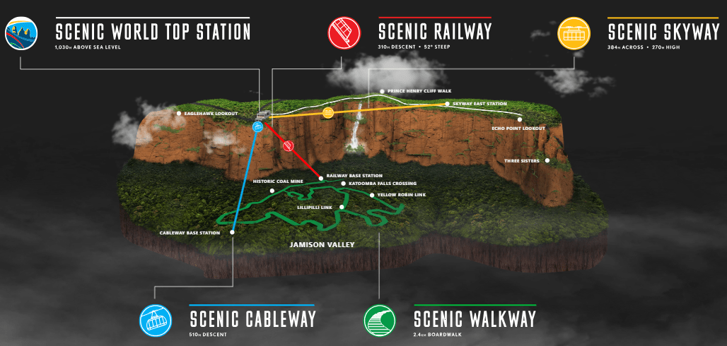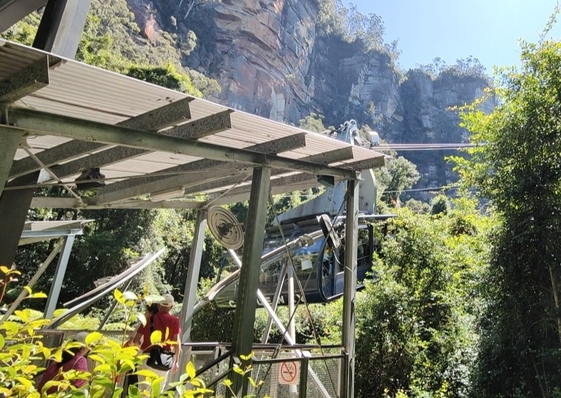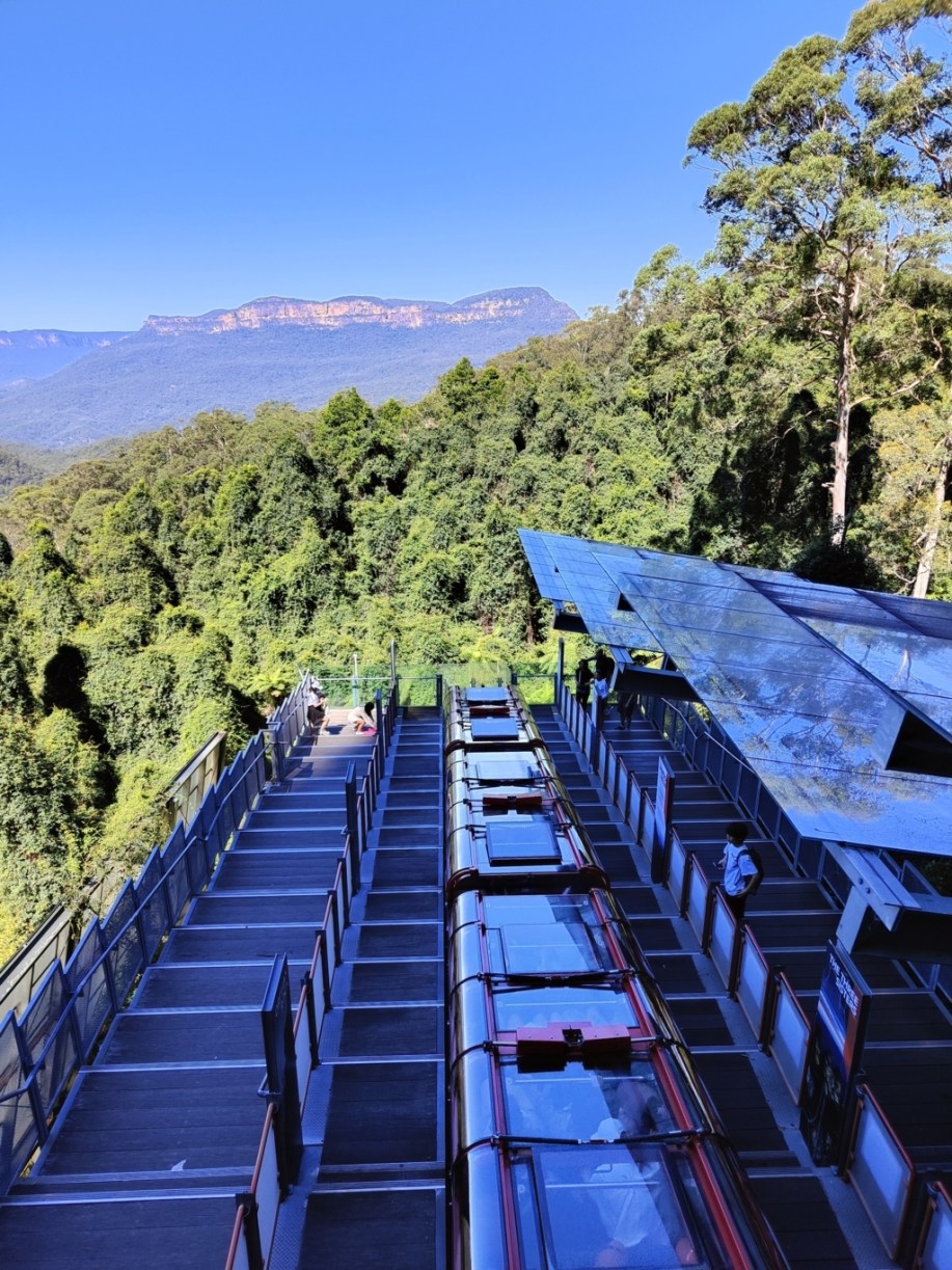 Estando abajo y como último trayecto para terminar arriba tomamos el último de los transportes del Scenic World, el Scenic Cableway, otro teleférico que asciende 545 metros hasta la cima de la montaña y que representa el transporte por cable más grande de Australia.