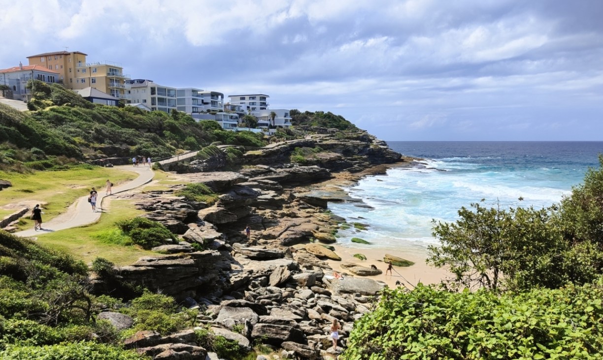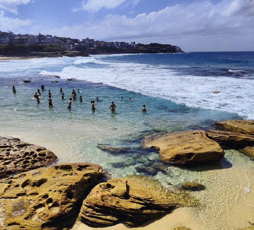 Llegamos a otra playa, Bronte Beach donde están las Bronte Baths en las que se puede uno bañar gratuitamente, pero se encontraban cerradas por trabajos de renovación. Este arenal es también muy chulo, agua limpia, con algo de piedras en la orilla pero sólo en una parte.