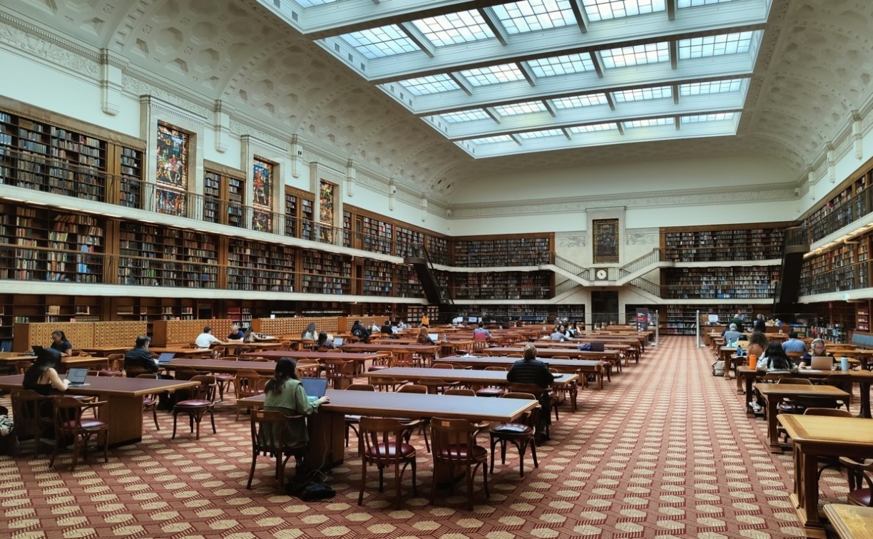 Este edificio nos gustó tanto por fuera que decidimos entrar. Admiramos el hall tras cruzar sus puertas, muy elegante, y luego llegamos a una luminosa sala de lectura. Desde luego que no es la impresionante State Library Victoria de Melbourne pero sí que nos gustó mucho el edificio.
