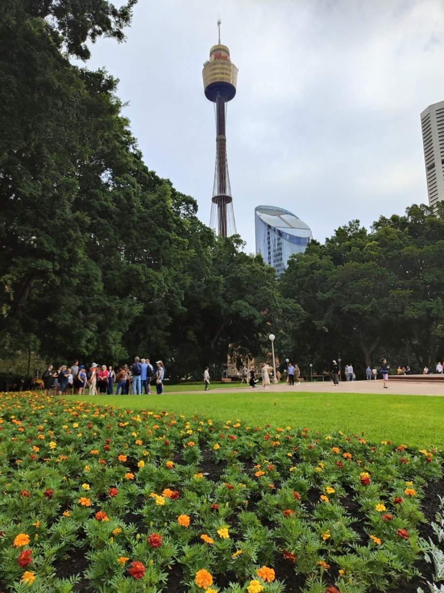 Nos acercamos al cercano Hyde Park, con su ANZAC memorial, y desde donde veréis un poco más adelante la Sydney Tower, la tercera torre más alta del hemisferio sur con 309 metros de altura. Obviamente subir es de pago para disfrutar de las vistas y hay un restaurante arriba, seguro que a módicos precios.