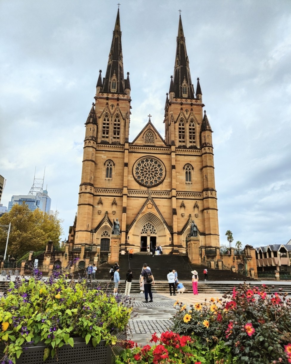 Construida en arenisca local, el estilo neogótico de su arquitectura recuerda a las grandes catedrales medievales de Europa. Entramos en su interior, que como suponía viendo las dimensiones desde fuera, impresiona. Tiene 107 m de largo y 22,5 m de altura del techo.