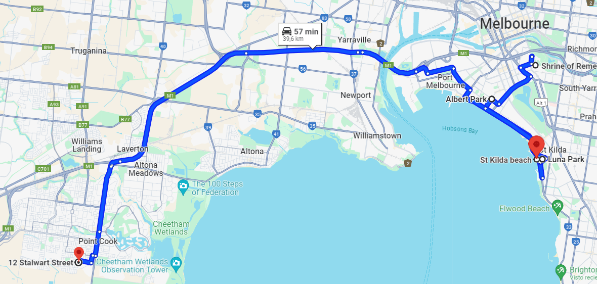 Os muestro como siempre el recorrido que habíamos hecho esa tarde ya en Melbourne.
