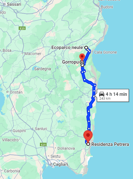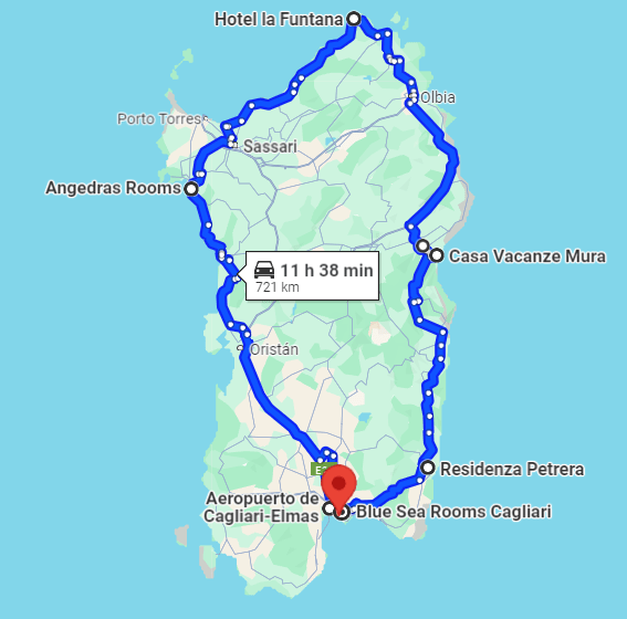 Para hacer el mapa de lo que íbamos a visitar durante esos 7 días y sabiendo que hay que priorizar, nos centramos en el norte y este de la isla, dejando el oeste para una mejor ocasión así que ese día teníamos un largo viaje cruzando toda la isla de sur a norte hasta la localidad de Alghero, donde teníamos nuestro primer alojamiento.
