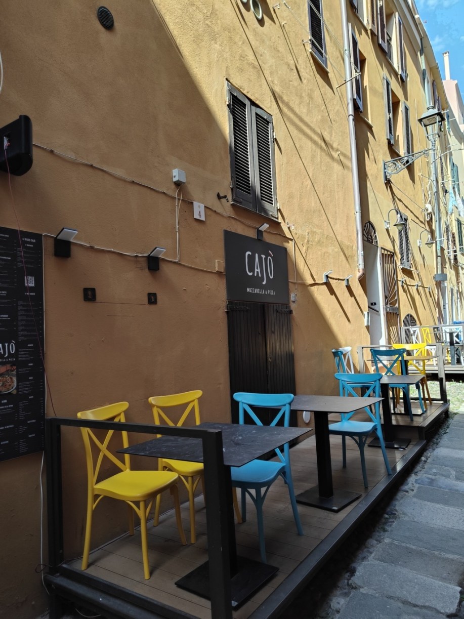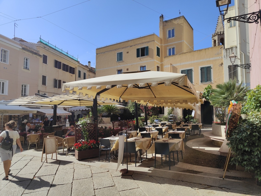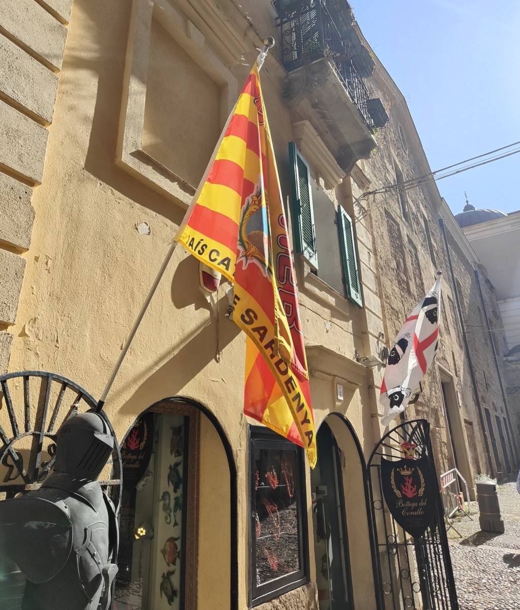 Seguimos calle abajo para llegar a la animada Piazza Cívica donde nos fijamos en una bandera catalana que me da pie para hablar de la intensa relación de Cerdeña con España, y más concretamente con Cataluña. Y es que la isla italiana perteneció al Reino de España, primero cuando el papa Bonifacio VIII decidió la cesión de la isla en 1324 a la Corona de Aragón, más adelante, tras la unificación de los reinos de Aragón y de Castilla con los Reyes Católicos, Cerdeña pasó a formar parte del Reino de España hasta el año 1708. En ese momento tuvo lugar la guerra de Sucesión española y Cerdeña pasó ya a formar parte del Imperio austríaco tras la firma de los tratados de Utrecht.