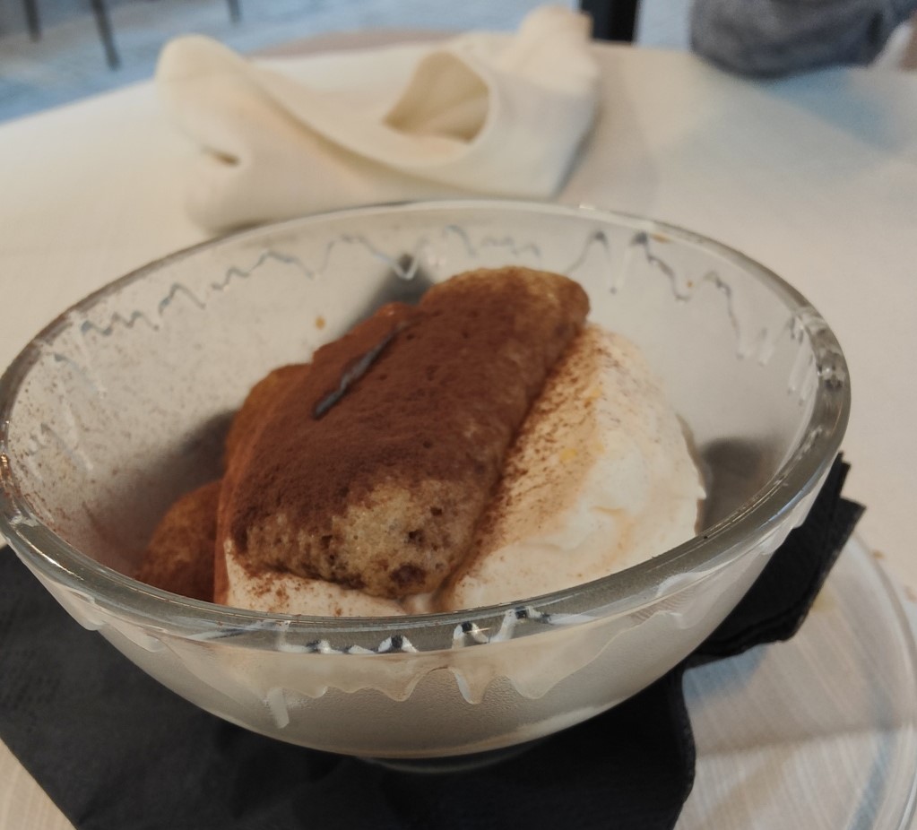 Después de disfrutar de las pizzas, y aunque estábamos llenos, el estómago extra que tiene el ser humano para los postres, se activó y nos permitió como no, probar otro clásico, el tiramisú, que es uno de mis favoritos si es casero, sin duda en el top 3.