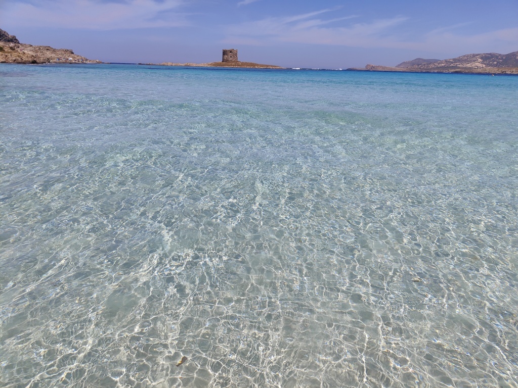 Estuvimos unas tres horas disfrutando de la playa y sus aguas, tomando algo en el chiringuito (caro, como no podía ser de otra manera, cerveza a 5€). Os recomiendo caminar hacia su parte izquierda donde tendréis esta fantástica perspectiva de su paisaje más original, con la emblemática torre de piedra della Pelosa al fondo, construida en el siglo XVI para defender Cerdeña de invasores indeseables.