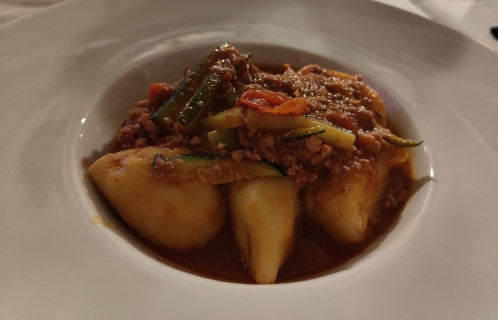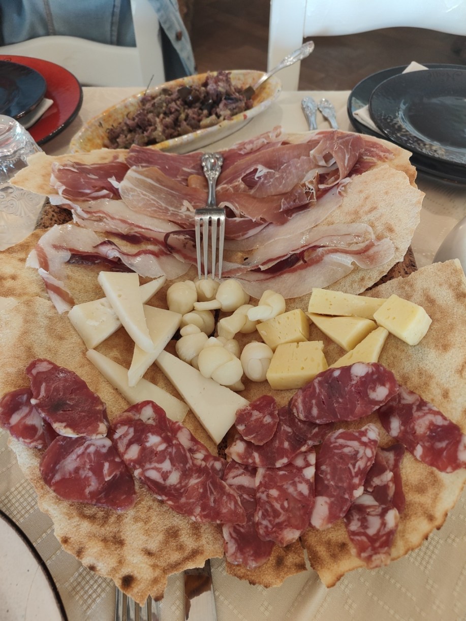 Empezamos por los entrantes, unos embutidos, tan populares en el país transalpino, acompañado de un tipo de picadillo de carne especiado muy sabroso.