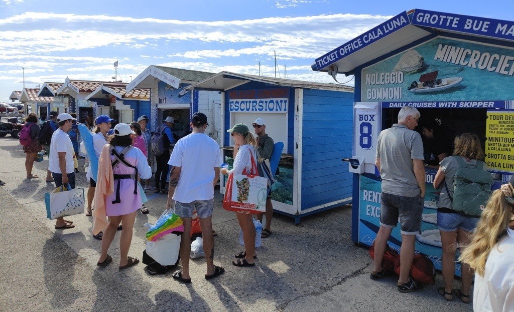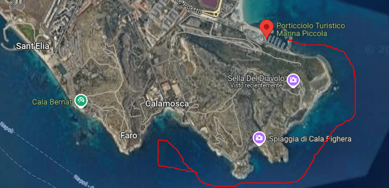 La actividad contratada como decía era a las 16h y consistía en un paseo en barco acercándonos a la Sella del Diavolo y Calamosca y que debíamos tomar en el Porticciolo di Marina Piccola, en el extremo oeste de la playa del Poetto. Duraba unas 3h y haría 3 paradas. Lo contratamos con la empresa Civitatis y pagamos cada uno 65€.