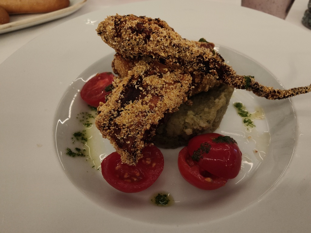 El sitio la verdad que estaba bien, comida más elaborada, mejor servida, de raciones pequeñas, como la nueva cocina que dicen ¿no?. Degustamos por ejemplo este pulpo in crosta muy original, estaba bueno.