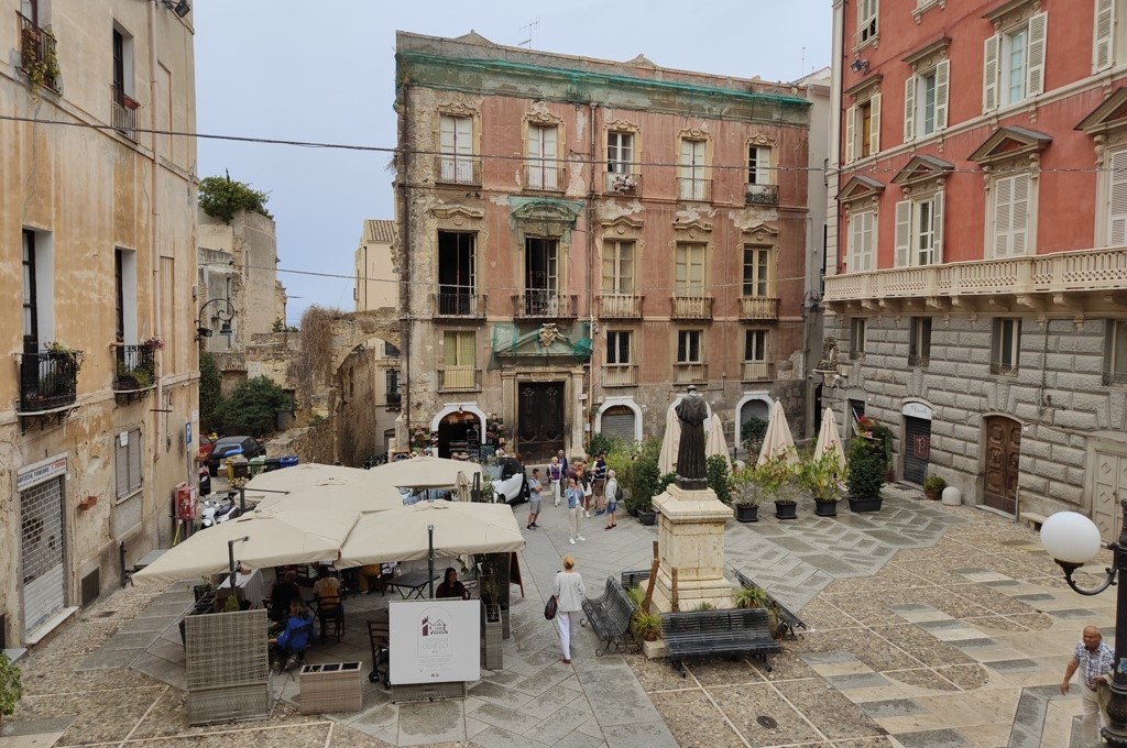 Al lado de ella está el Antiguo Palacio de la Ciudad o Palazzo Bacaredda, que fue la primera sede municipal de Cagliari desde la Edad Media hasta 1906 como rezaba en una placa informativa. El edificio se remonta al siglo XIII pero fue reformado por los piamonteses en 1787.