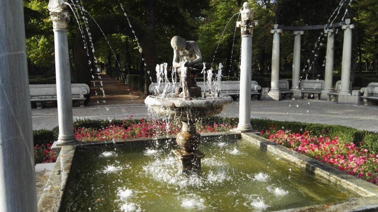 Pasamos junto a la fuente de Apolo y alcanzamos el singular y precioso Estanque de los Chinescos. Construído en el siglo XVIII por orden de Carlos IV siguiendo la moda de los jardines paisajistas y recreando, en este caso, un estanque chino con dos templetes o cenadores en los islotes. El griego (al fondo en la foto) con columnas jónicas de mármol, está atribuido a Juan de Villanueva, y el otro, que era el propiamente chino, fue destruido en la Guerra de Independencia y reconstruido durante el reinado de Fernando VII.