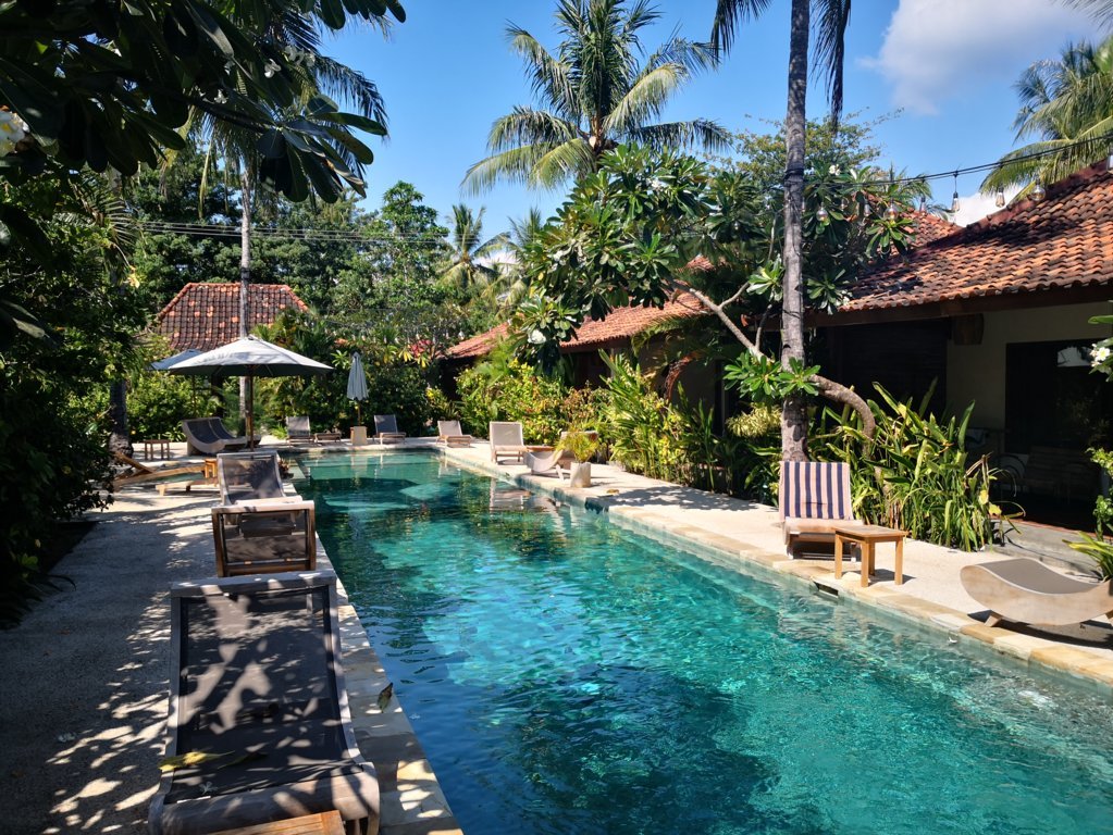 Este fantástico hotel fue un auténtico descubrimiento de mi viaje a Indonesia en 2023. Se encuentra en Gili Trawangan, la más animada y para mí más recomendable de las tres islas Gili.